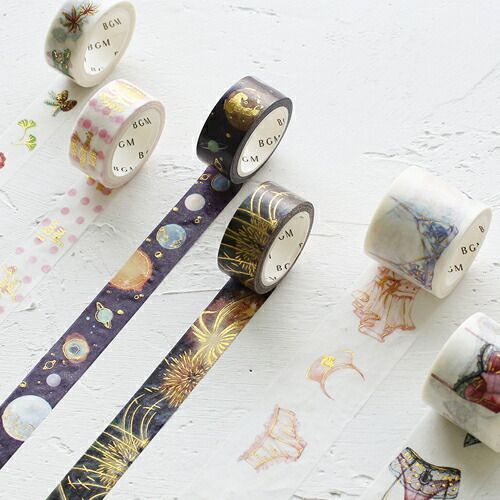 ライフシリーズの箔押しタイプ、可愛い、綺麗な手描き水彩画デザインの多い個性的なマスキングテープ貼るだけで可愛いく、綺麗になるBGMマスキングテープです。【検索ハッシュタグ】#マスキングテープ#マステ#ますて#テープ