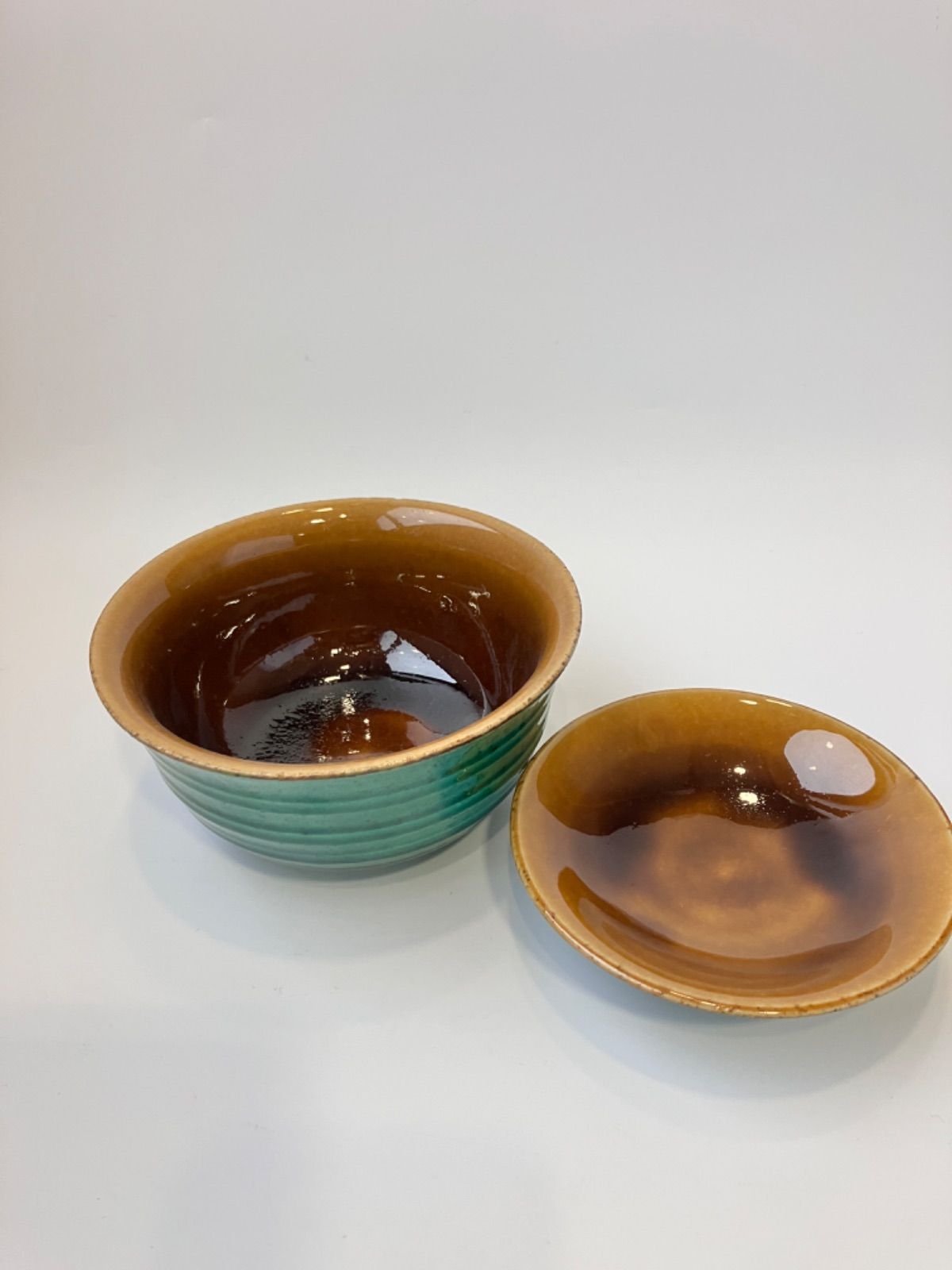 ・外側の落ち着いた緑交趾と内側の温かみある飴釉の組み合わせ