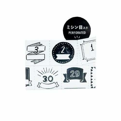 まとめ マークス マスキングテープ 水性ペンで書けるマスキングテープ ミシン目入り 手帳デコ2巻セット 日付柄 手描きモノクロ MSTFA 09 F