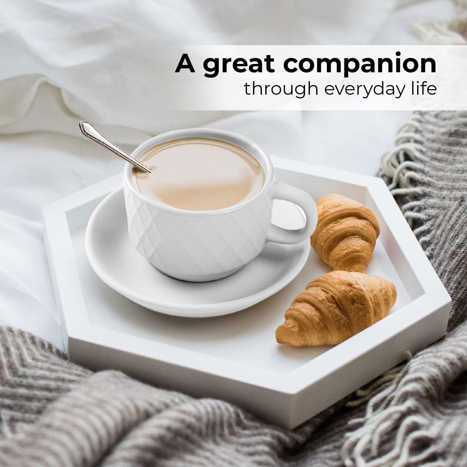 目を引くデザイン - MIAMIOのエスプレッソセットは、毎朝を特別なものにします。モダンでマットな仕上げのダイヤモンドの柄が、陶器のカップに洗練された高級感を与えます。