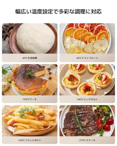 【7種類のプリセットモード】人気のレシピを内蔵し、日常の調理を手軽にサポート。料理ごとに最適な温度と時間を自動で設定し、いつでも完璧な仕上がりに。調理時間や温度などを自由に設定できるカスタム「M」モードも搭載しています。