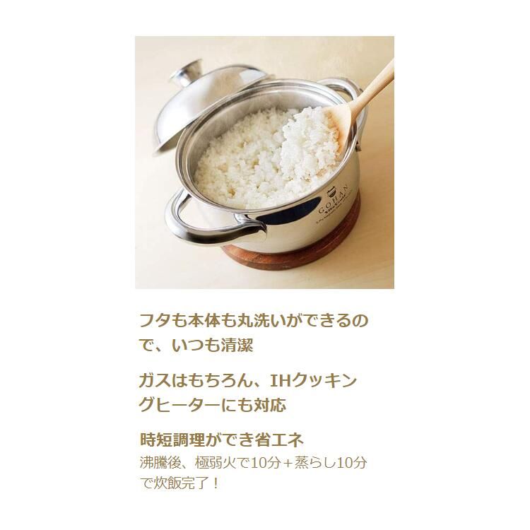 ビタクラフト ごはん鍋 No 3850 ビタクラフトGOHAN 炊飯鍋 ガス IH対応 フタ 本体も完全5層構造
