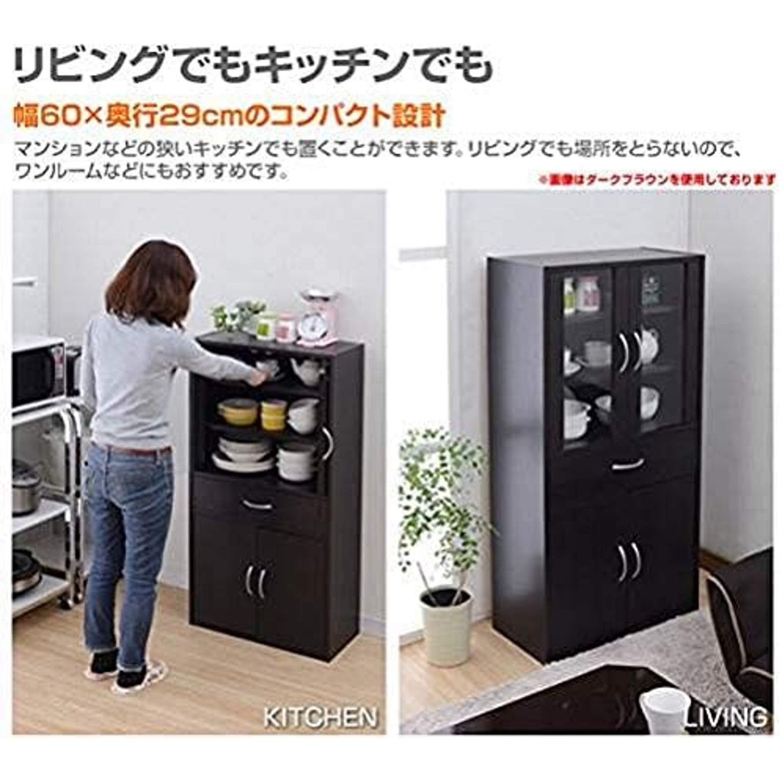 素材・材質:本体=プリント紙化粧繊維板、扉=ガラス