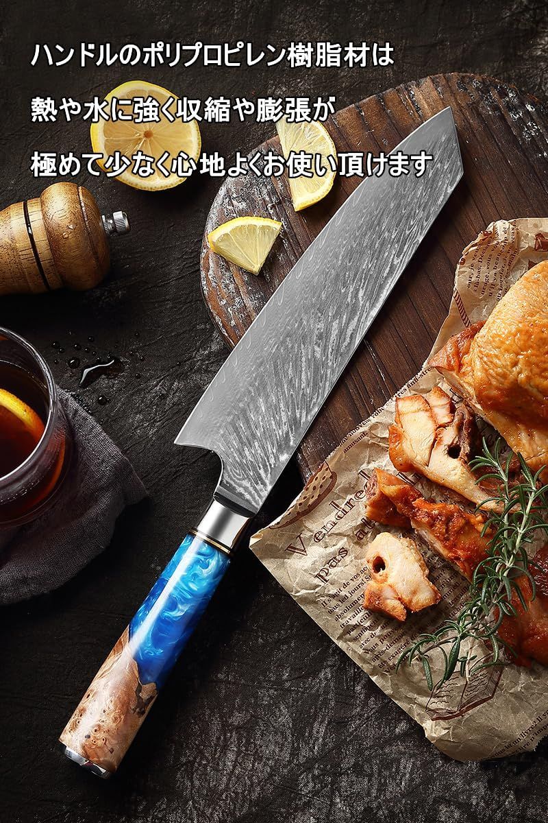 Utaki 剣型牛刀包丁 67層ダマスカス 切付型包丁 VG-10鋼芯 シェフナイフ 火羽紋ダマスカス 渦巻紋ポリプロピレン樹脂ハンドル