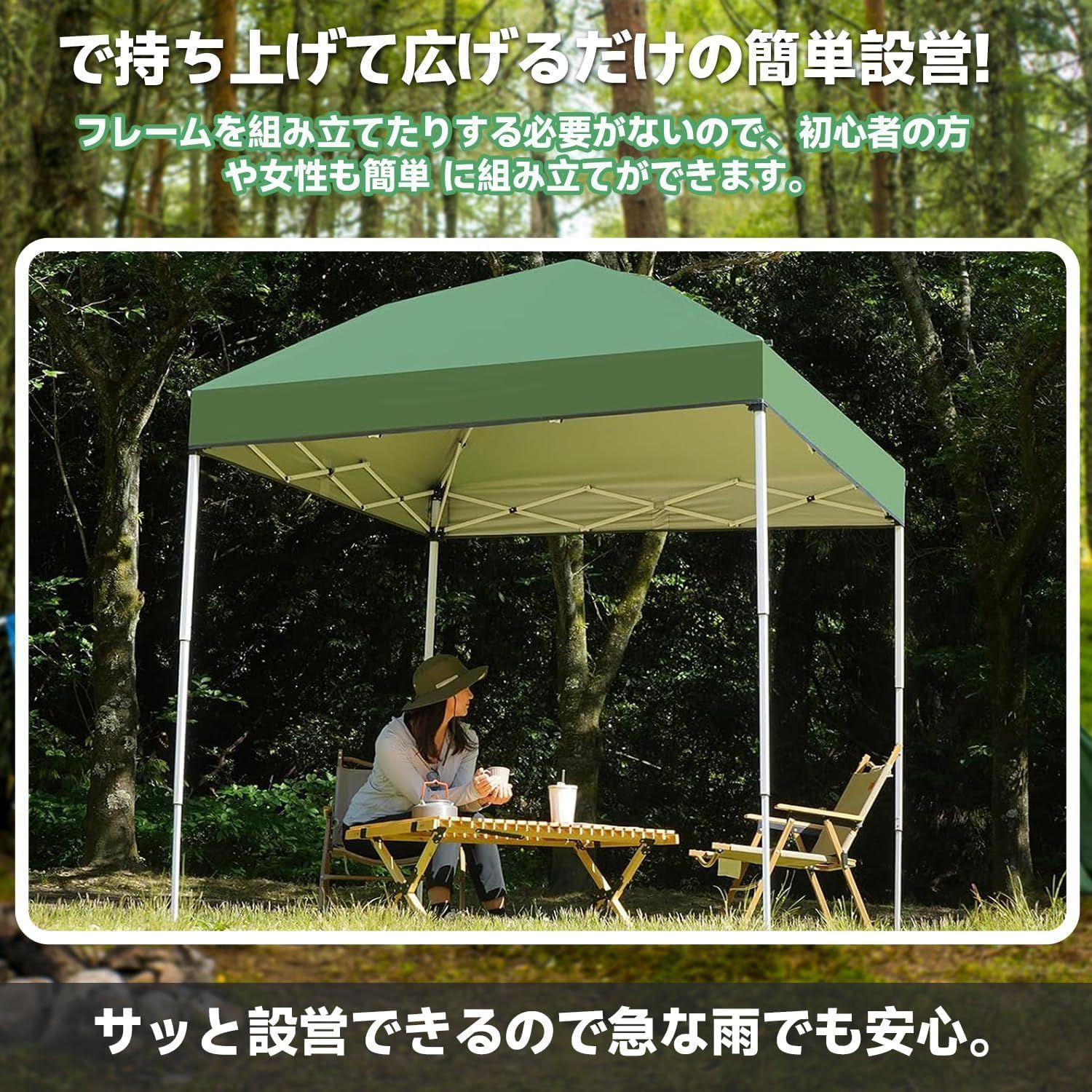 Leechatwin タープテント ワンタッチテント パーティーテント 3 mx m UVカット 耐水圧生地 通風口 大型テント 日よけ イベントテント 組立て簡単 lee 240424 グリーン