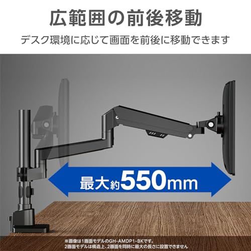 グリーンハウス デュアルモニターアーム ガス圧式 17 32インチ対応 耐荷重1 9 kg 3年保証 4軸 ブラック GH AMDP 2 H BK 4 d 05 b 5