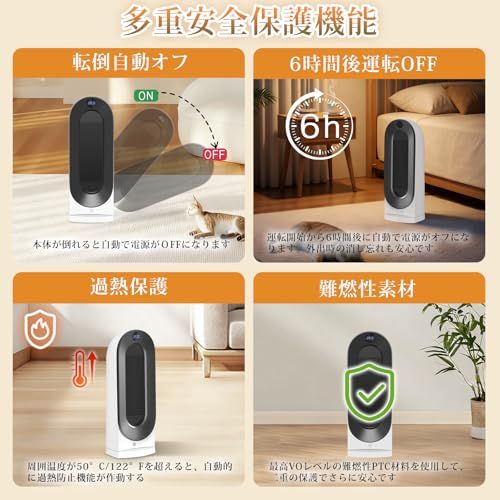 冬の 冷暖兼用 セラミックヒーター ヒーター 大風量 速暖 人感センサー付き 暖房器具 省エネ 電気 3段階切替 70°首振り 室温センサ一 12 Hタイマー 切り忘れ防止 静音 リモコン操作 タッチ操作 過熱保護 転倒OFF セラミッ 4 c 059 ea 3