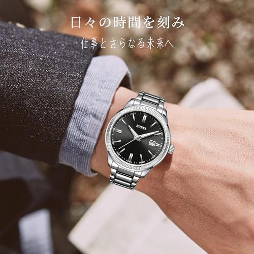 BUREI 腕時計 メンズ アナログ クオーツ シンプル 日付 防水 見やすいとけい ステンンレス メンズうで時計 フ?ラック ブランド シルバー おしゃれ 紳士 男性用 ビジネス カジュアル プレゼント ウォッチ 7861 cb 24