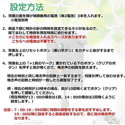 ※鳩が鳴く時間は設定した時間の前後10分程度の誤差がございます。 こちらの理由での返品・返金についてはできかねますので、ご了承ください。