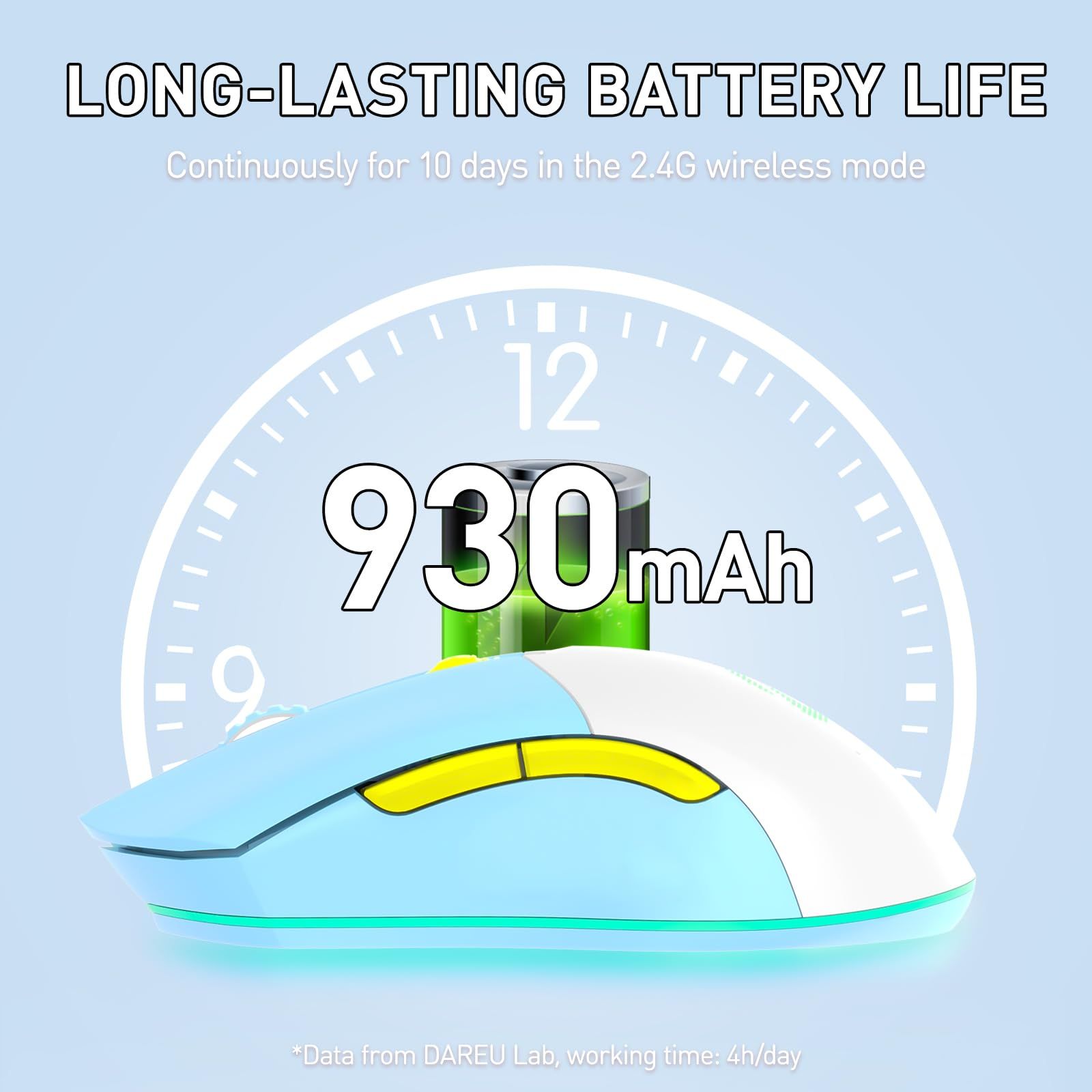DAREU ゲーミングマウス 無線 水色/ブルー ワイヤレス2.4G/有線USB接続可能 超軽量85g 人間工学 可愛い 12000DPI 充電ドック付き プログラム可能 EM901X【1年間メーカー】