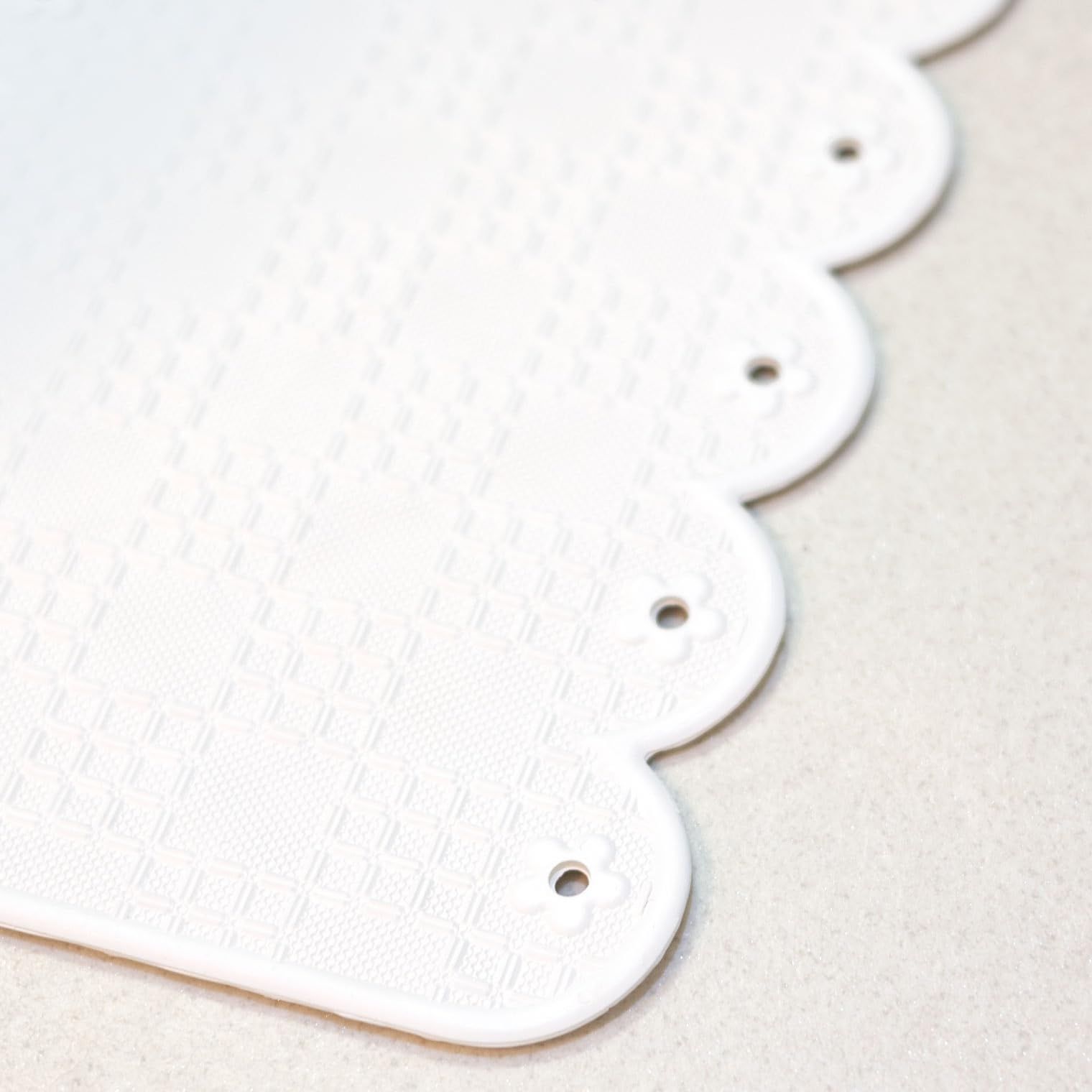【滑りにくい天然ゴム】天然ゴム素材にエンボス加工した、凹凸のあるマットなのでぎゅっ握っても滑らない。浴槽内にも取り付けできるので、ミニサイズの小さめ浴槽マットとしてもお使いいただけます。柔らかいので浴槽や手摺りに沿って、ぴったりくっつきます。