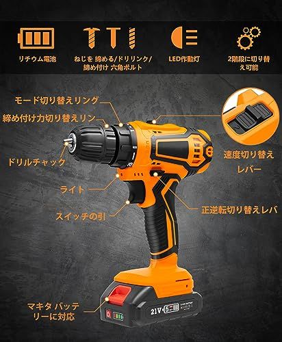 迅速に発送 電動ドライバー ドリル 21 v 1500 mAh バッテリー 付き マキタ バッテリーに対応 25段階トルク調節 最大32 N m スピード調節機能 正逆転切替 穴あけ 電動工具セット 21ドリル 收?ケース付き DIY初心者 90 cc 4 b 0