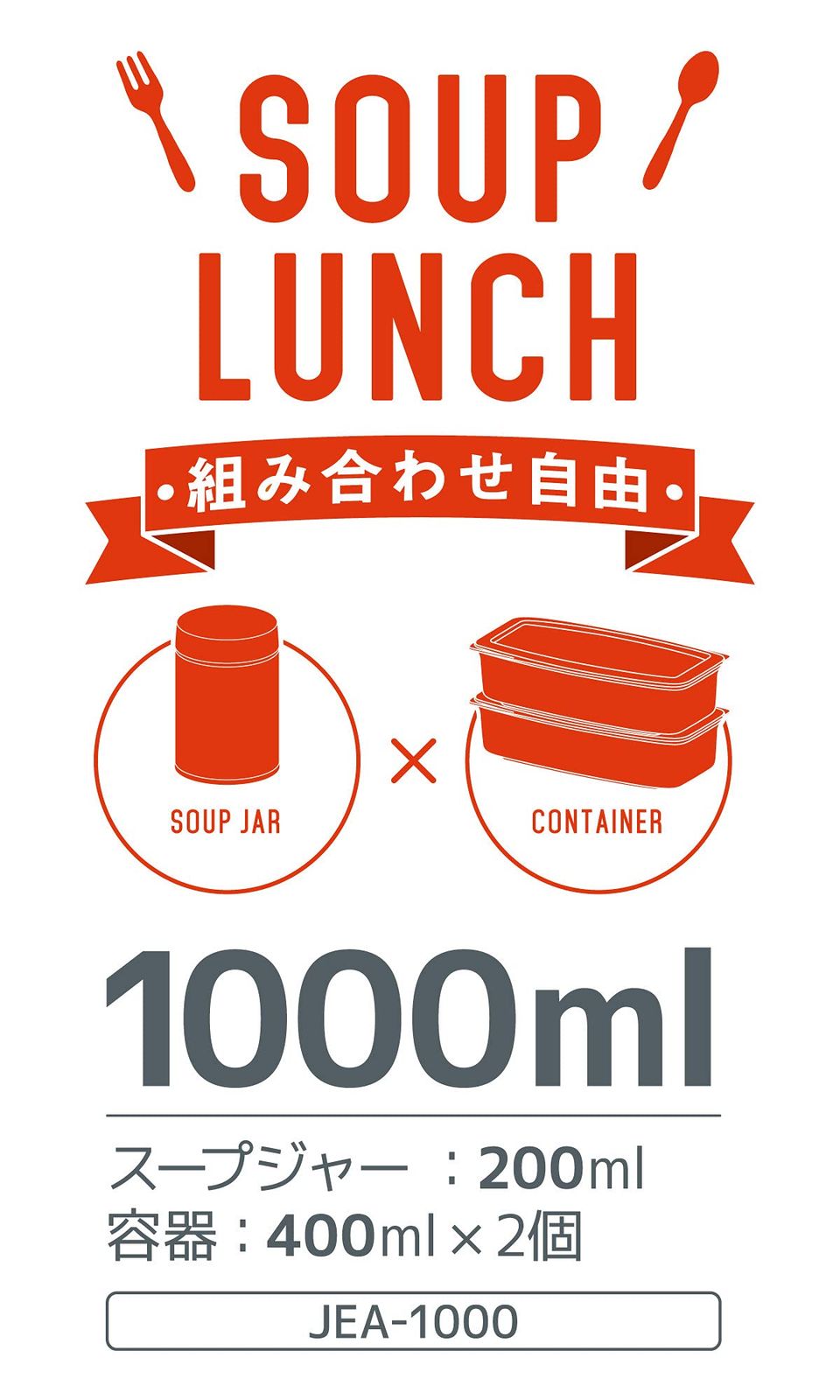 おかず容器2個と容量200mlのスープジャー、断熱素材の専用ポーチがセットになったランチセットサイズ(約):幅24.5×奥行8.5×高さ10.5cm、本体重量(約):500g、容量:スープジャー/200ml・おかず容器/400ml×2個保温効力:(ポーチなし)55度以上(6時間),(ポーチあり)58度以上(6時間)/保冷効力:(ポーチなし)12度以下(6時間),(ポーチあり)12度以下(6時間)【スープジャー】本体:ステンレス鋼(アクリル樹脂塗装)