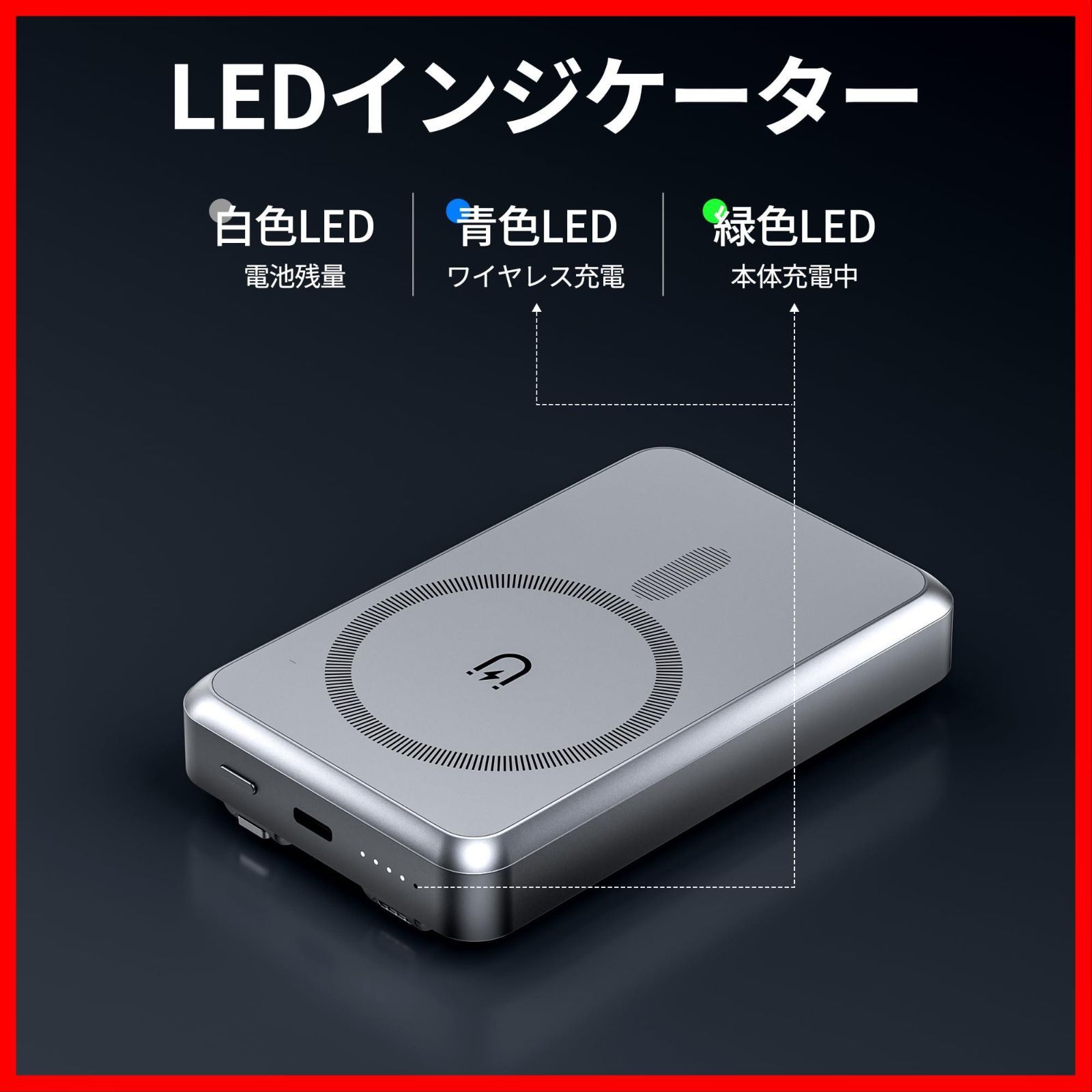 iPhone 16 15 14 13 12シリーズ対応 マグセーフ充電器 コンパクト マグネット式 小型 Type C入出力兼用 LED残量表示 機内持ち込み可 スタンド付き PD 22 5 W Wワイヤレス急速充電 旅行 出張 防災 大容量 ケーブル