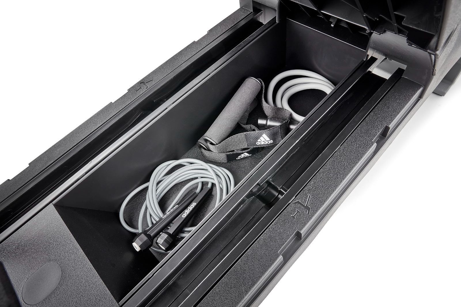 adidas(アディダス) HIITデッキ トレーニングベンチ フラット/インクライン/デクライン ベンチ [組立不要] 高さ2段階調節可能 レジスタンスチューブ/スキッピングロープ付き 収納有り ADP-15070BK