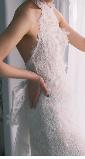 総レース ウェディングドレス ホルターネック マーメイド 上品