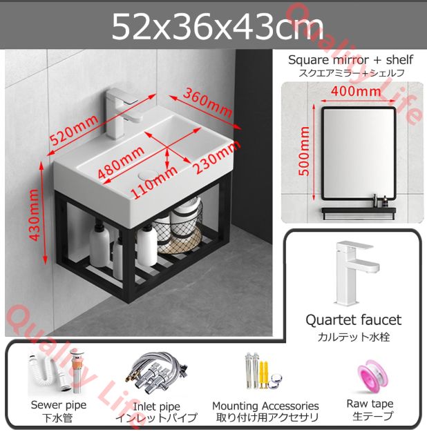 ? 【狭い洗面化粧台】当社のバスルームシンクキャビネットのサイズは次のとおりです:40x30x43.5cm、40x42x48cm、48x37x45cm、52x36x43cm、52x42x45cm、55x31x43cm、61x42x45cm、取り付けアクセサリー:温水および冷水蛇口、給水パイプ、ダウンパイプ、コネクター、取り付けネジ、生 素材のベルト。