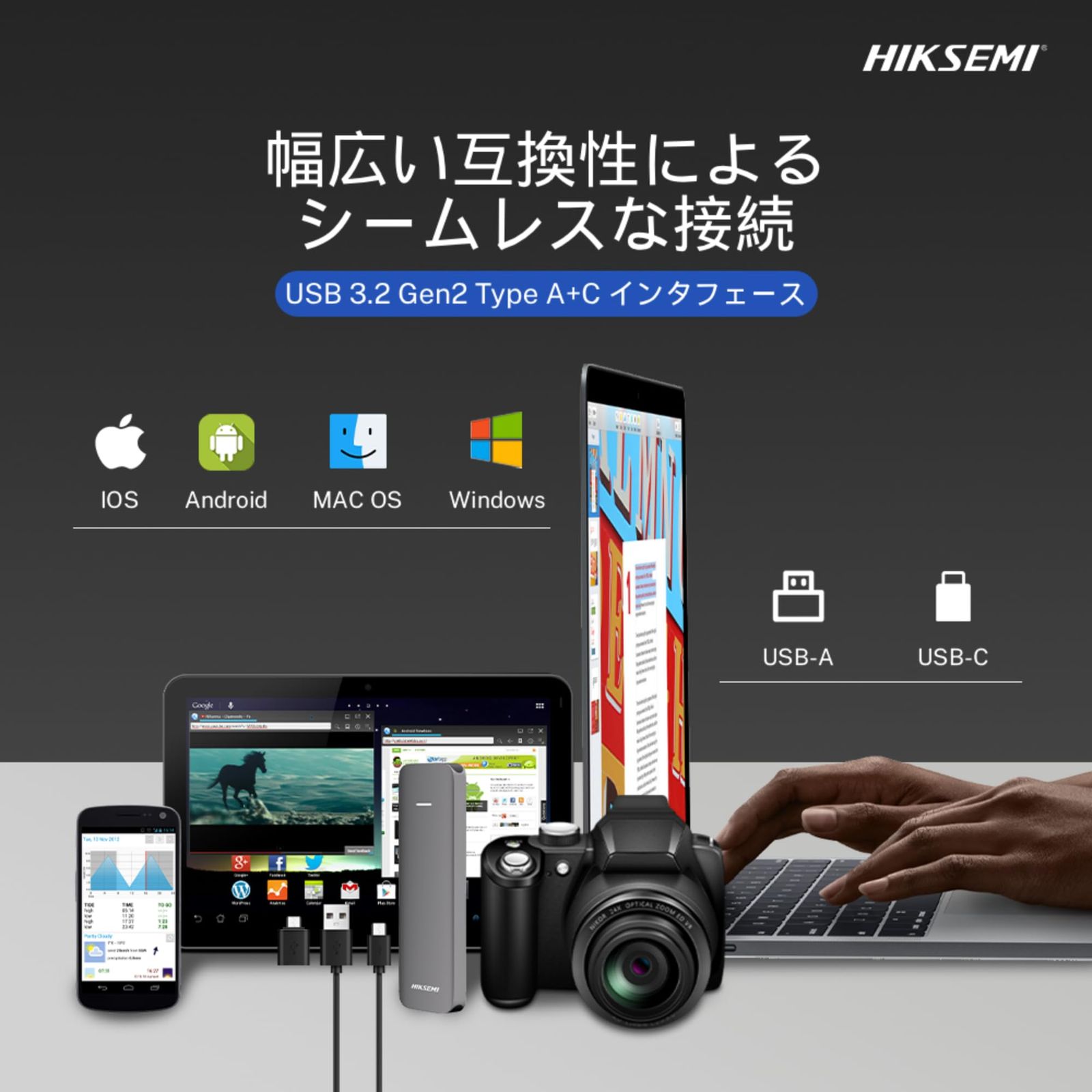 HIKSEMI ポータブルSSD 1 TB 転送速度1050 MB s USB C A対応 軽量コンパクト 外付けSSD アルミニウム合金ボディ HS ESSD Elite T
