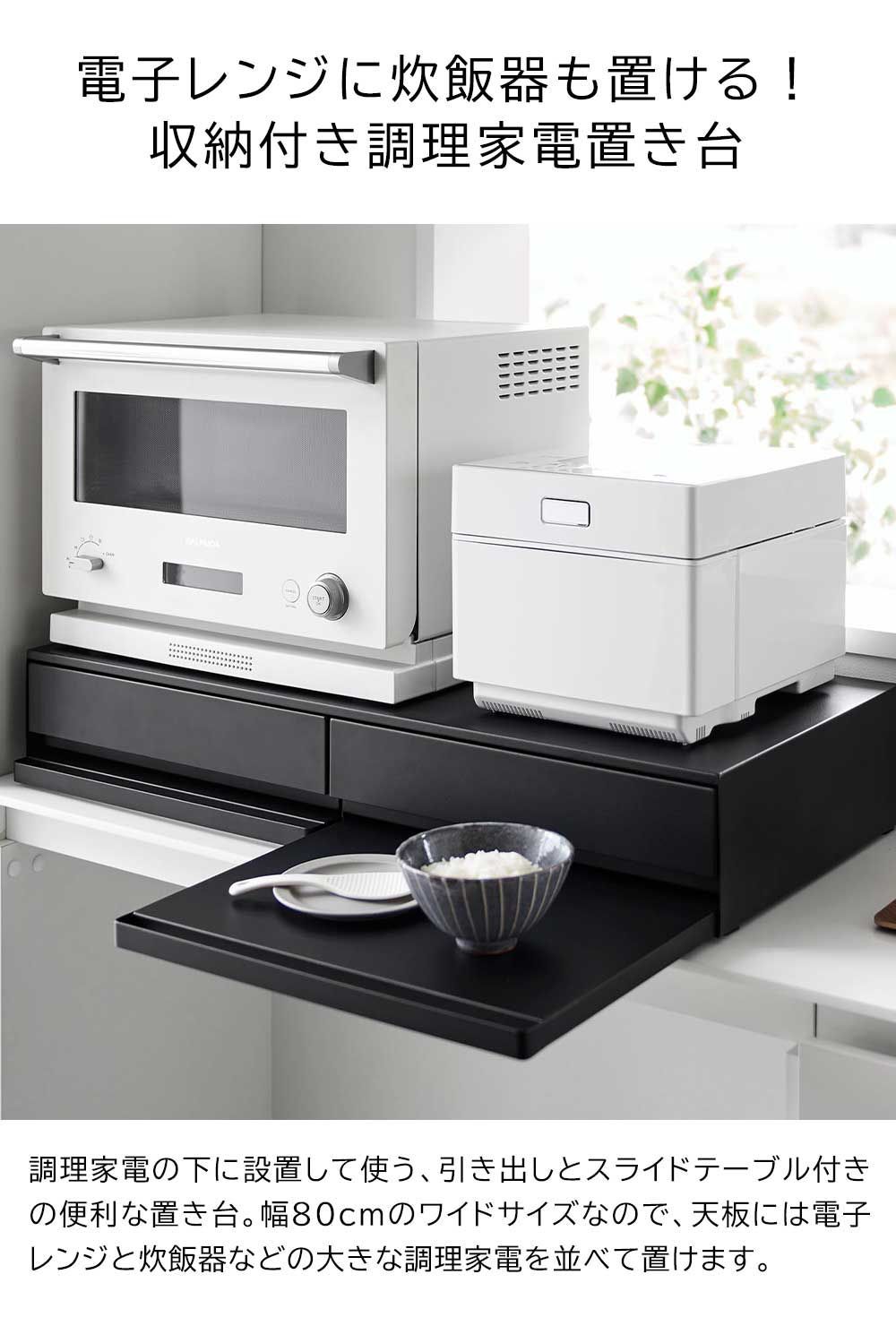 ツーウェイキッチン家電下引き出し スライドテーブル W 80 タワー tower 山崎実業 レンジ台 幅80 キッチン レンジ下 収納 2つ 大容量 引き出し レンジ下トレー スライドトレー 1697