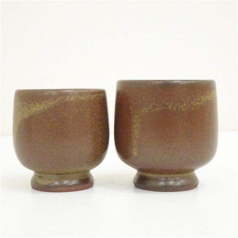 佐渡無名異焼 小平窯 人間国宝三浦小平二造 夫婦湯呑 共箱 湯飲み 湯呑み 湯のみ おしゃれ かわいい 茶道具 茶器 来客 お茶 旅館 和風 雑貨 レトロ 食器