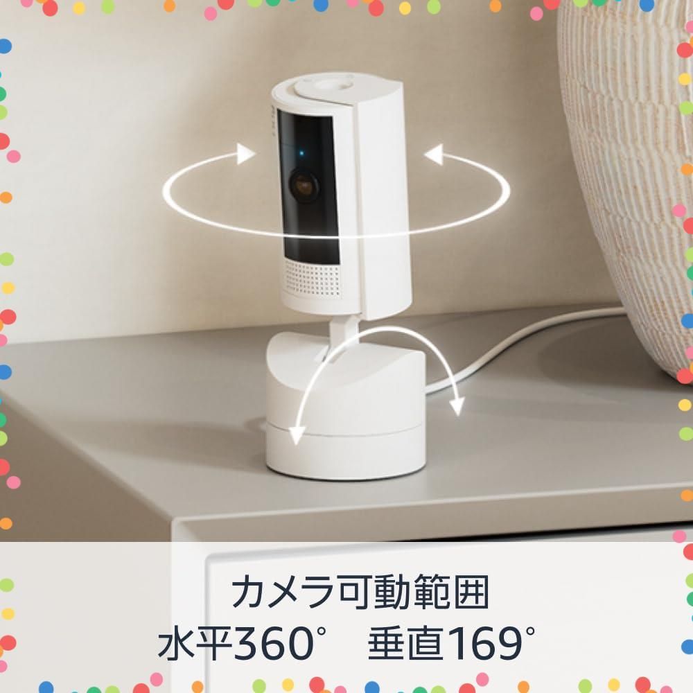 在庫 左右360° 上下169° パンチルト 屋内用防犯カメラ Pan Tilt Indoor 首振り機能付きインドアカム Cam ホワイト Ring Homeプラン30日間無料体験