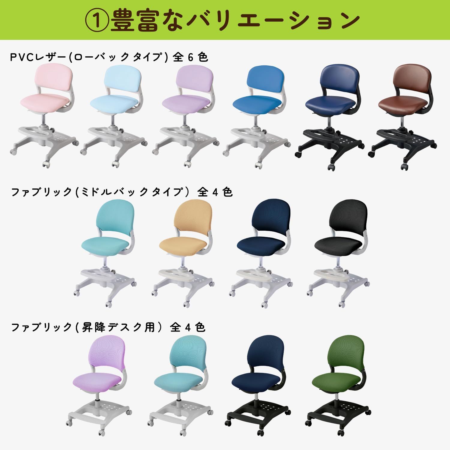 特徴1/座面は高さ無段階調整と前後にスライド11cmでき、成長に合わせてご使用になれます。