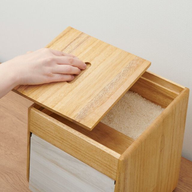コンパクトな桐の米びつ。調湿性に優れ、お米の保存に最適。水拭き可能でお手入れも簡単です。