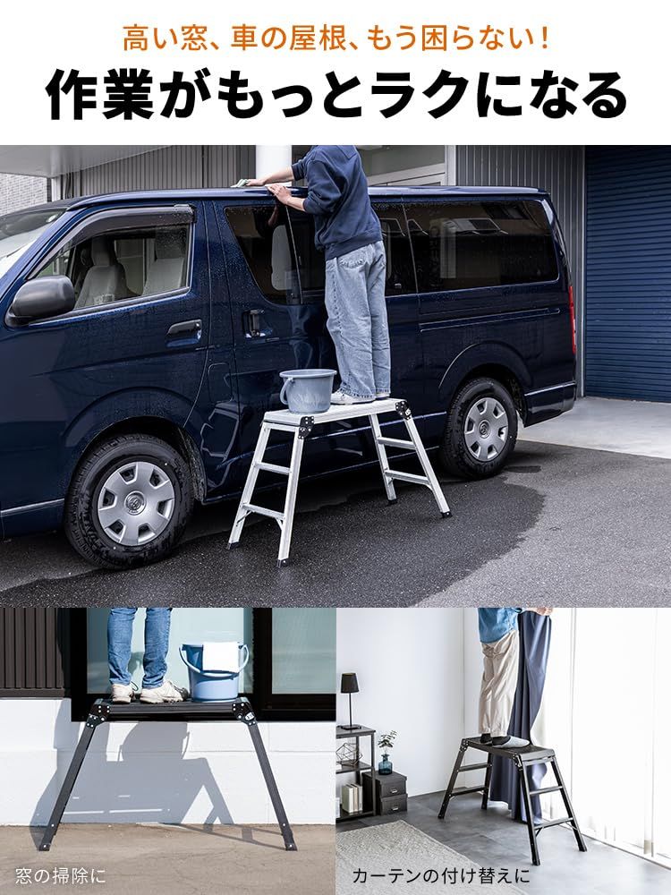 【高さ70cmで快適な作業環境を実現】アルミ足場台で高い場所の作業を効率化!DIYやリフォーム、屋内外作業、さらにミニバンの洗車にも最適です。