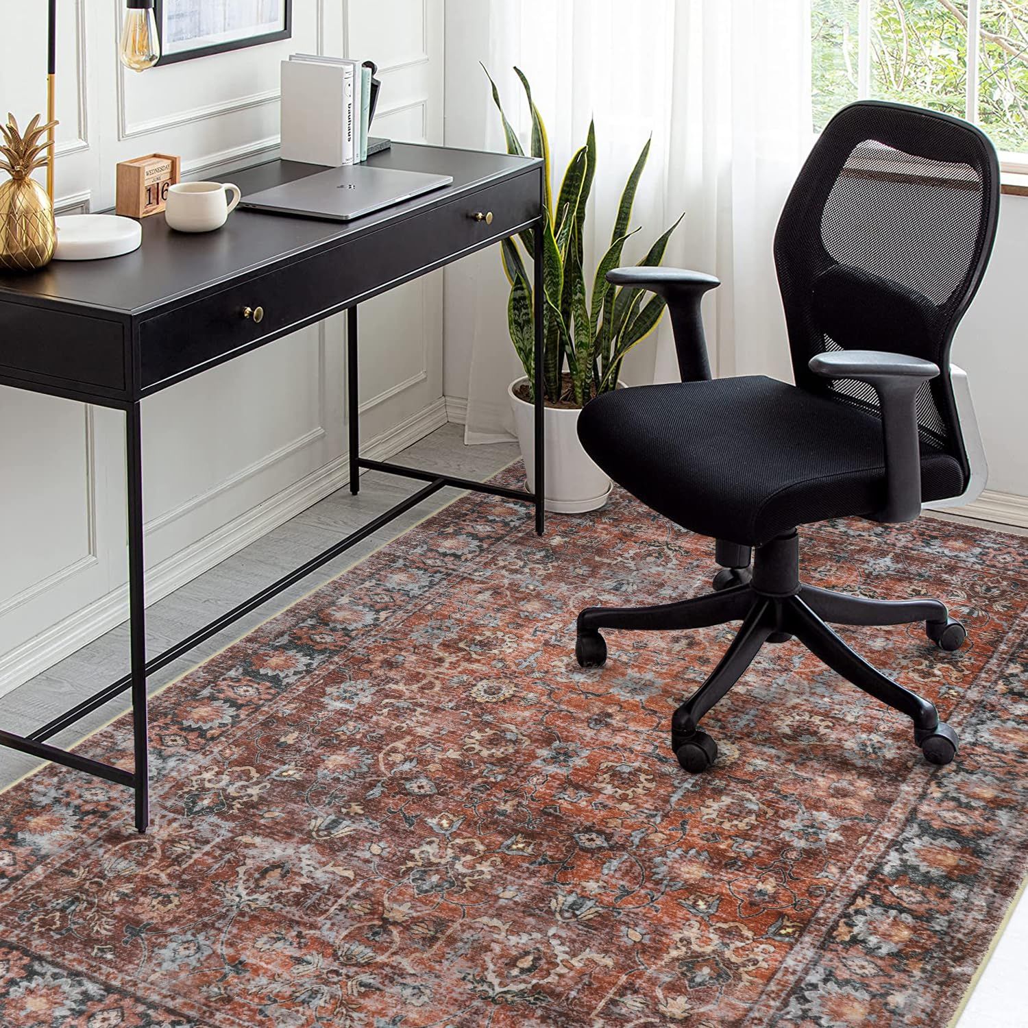 HAOCOO ラグ カーペット 洗える 140 200 cm オールシーズン適用 絨毯 ペルシャ風 ラグマット 1 5畳 ふわふわ おしゃれ 滑り止め 低反発 防ダニ 防臭 軽量 防音マット 室内用 デスクマット ダイニングマット アンティーク 花柄