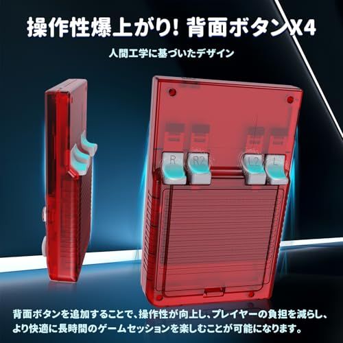 【人間工学デザイン】 ポケットゲーム機は左右アナログスティックL1/L2・R1/R2の背面ボタンを搭載し、360全方向の精密な操作が可能。直感的かつ快適なプレイを実現します。特に格闘・アクション・シューティングなど、アーケードスタイルのゲームに最適化されており、操作性と没入感が大幅に向上。長時間のプレイでも持ちやすく疲れにくい設計で、お子さまから大人のゲームファンまで幅広くお楽しみいただけます。