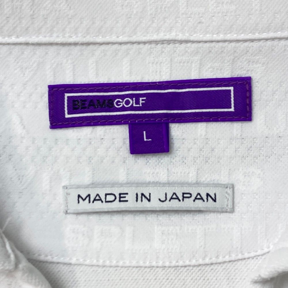 サイズ L BEAMS GOLF ビームスゴルフ モデル 襟付 半袖Tシャツ ロゴボーダー柄 ホワイト系 ゴルフウェア メンズ ストスト