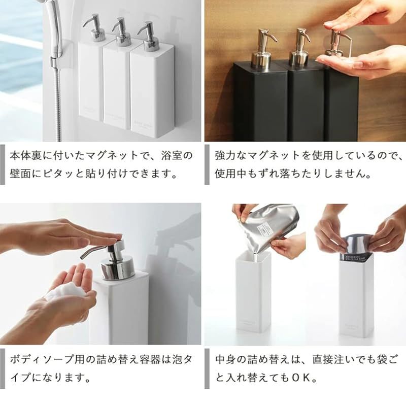 商品名:山崎実業(Yamazaki) マグネット風呂イス 座面高25cm + マグネット&引っ掛け湯おけ + マグネットディスペンサーボトル 3本セット 泡タイプ&ノーマルタイプ 【5点セット】 tower ホワイト 6925 5378 5210 4258 4260