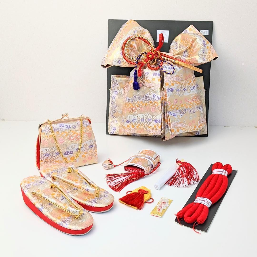 着物・長襦袢・作り帯・筥迫・お守り・草履・バッグ・帯締め・帯揚げ・志古貴・びら簪・扇子・腰紐2本