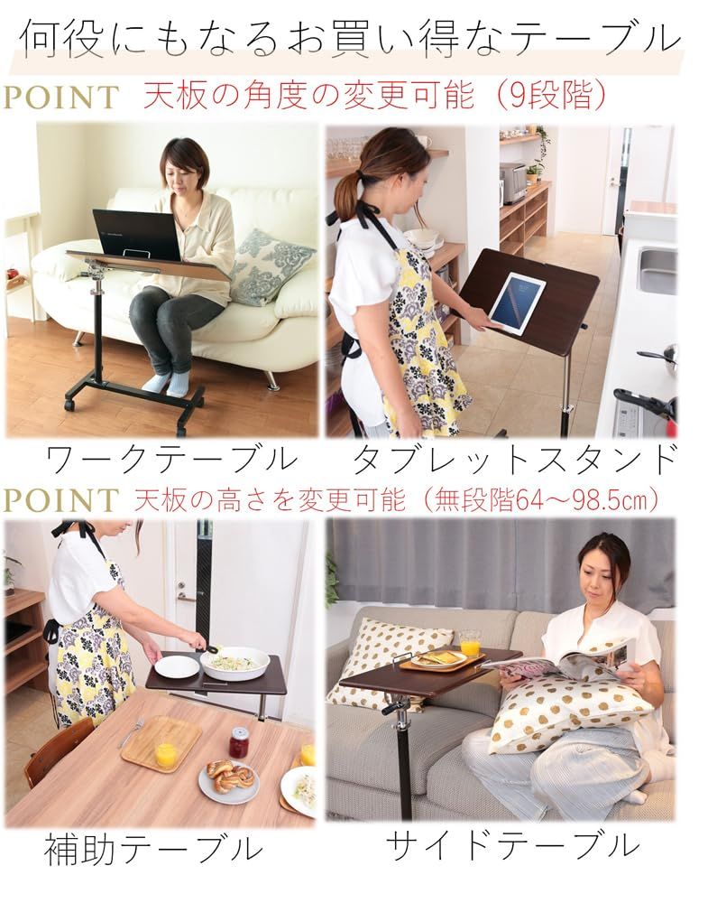 ダークブラウン ブラック コンパクト 折りたたみ 高さ64 98 5 cm 昇降 SCY 角度調節 キャスター付 サイドテーブル オスマック OSMAC