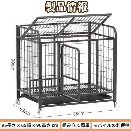 犬のケージ 屋根付き ペットケージ 96 3 65 90 cm 犬 サークル 錆防止 ペットサークル キャスター付き 引き出し式トレイ付き 組立簡単 掃除簡単 小型 中型 大型犬用 脱出防止 室内外兼用 ペット用品 日 eafc 2 d 75