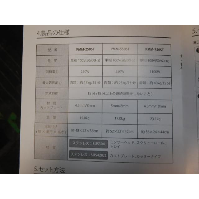 2015年製 ミナトワークス PMM 550 ST ミート チョッパー 100 V W mm 17 kg プレート5 8 ミンサー ミンチ