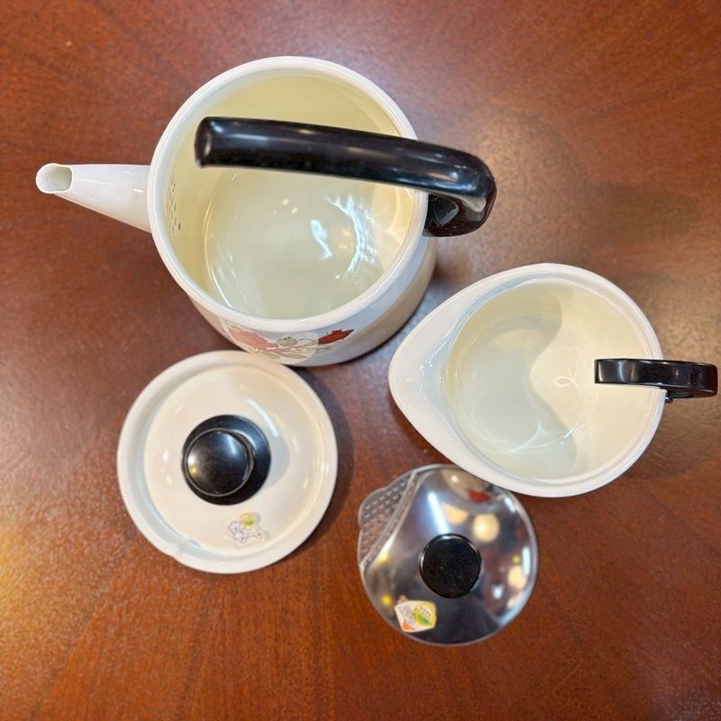 き マルエス ホーロー ケトル&ポットセット 昭和レトロ 薔薇 花柄 琺瑯 やかん ネオエナ ヴィンテージ CA 1129 2