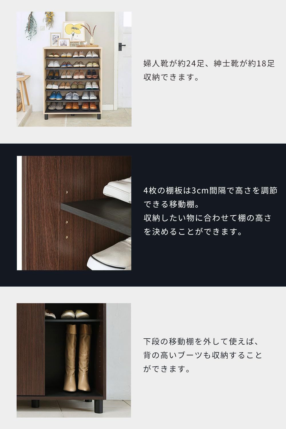 【商品説明】シンプルであきのこないナチュラルな木目柄のフルニコシリーズ。 FUL-1080SDDK は幅約80cm 買い足し買い替えにピッタリな下駄箱 玄関収納です。ダークブラウンの癖のない木目のシートは、一人暮らしのスタートや収納の買い足しにピッタリ。サイズはコンパクトな幅約80cm×奥行39cm×高さ99cm(実寸 幅80.2×奥行39×高さ99cm 脚高8cm)。扉は開閉に場所を取らない引き戸。ローラーにより滑らかに開閉。婦人靴で約24足、紳士靴で約18足収納できます。4枚の棚板は3cm間隔で高さを調節できる移動棚。収納したい物に合わせて棚の高さを決めることができます。下段の移動棚を外して使えば、背の高いブーツも収納することが可能。シンプルでつかみやすい取っ手は清潔でスタイリッシュな印象。白井産業の他の商品は、タイトルの「白井産業(shirai)」をクリックする事で確認していただけます。
