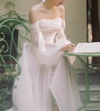 ボリューム袖 ウェディングドレス 長袖 オフショル Aライン 韓国