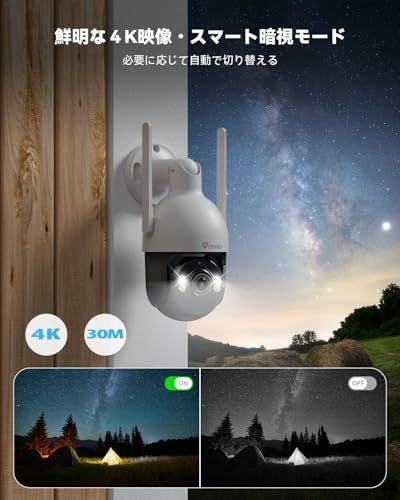 1? 【4K超高画質&30mフルカラー暗視】 Ctronics 4K防犯カメラは、38402160の超高解像度で細部まで鮮明に映像化。3.6mmスターライトレンズとF1.6大口径で、赤外線ライトなしでも自然なカラー映像を実現します。昼夜を問わず住宅・店舗・駐車場・交通監視など幅広く活躍します。