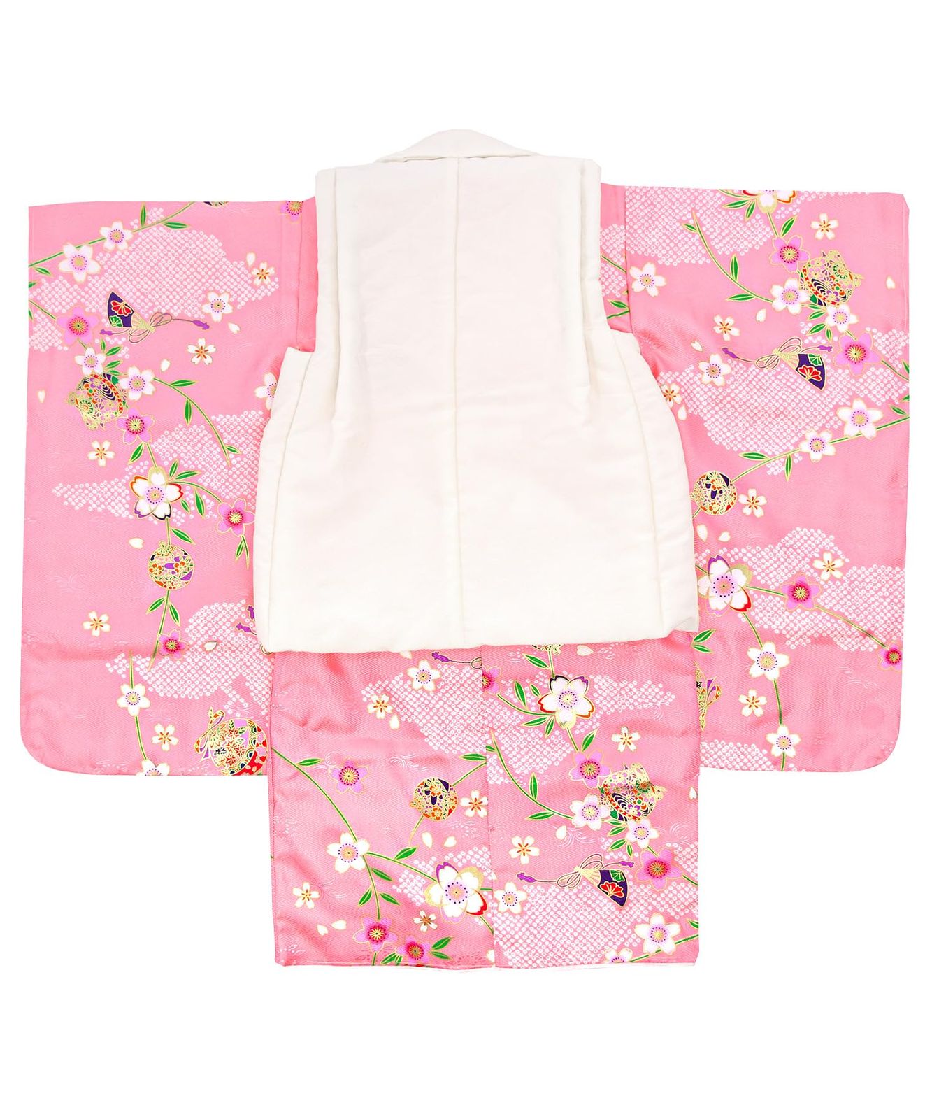 KYOETSU キョウエツ 七五三 3歳 女の子 ガールズ 着物 セット 被布 無地被布 小物 フルセット 753 3 桜の春夢 90 100 cm