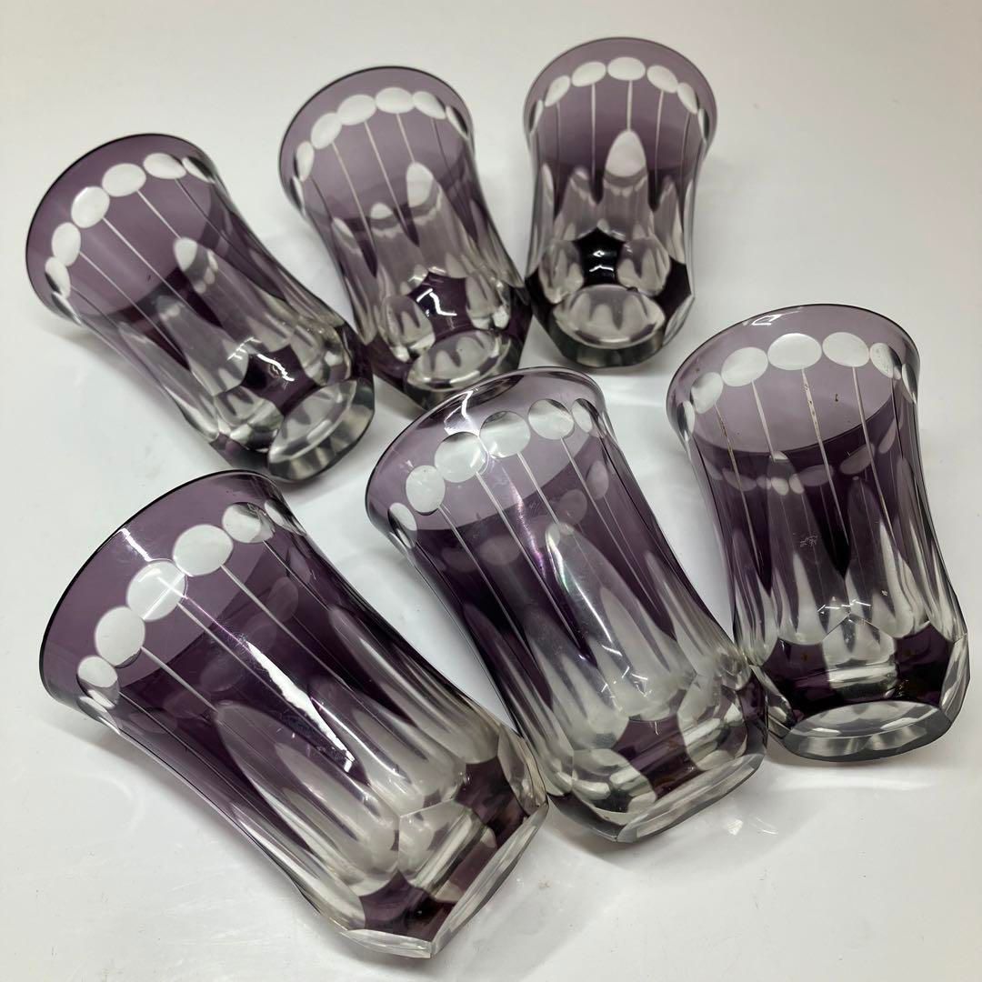 時代 ガラスコップ6客 共箱 高さ10 3 cm タニオ 東Y 6 0410