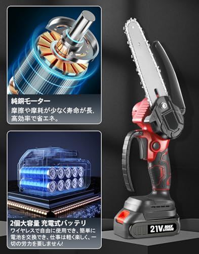 チェーンソー 充電式 造園会社監修?高効率ブラシレスモーター?2026新登場 4 5 Ahバッテリー 省エネ 電動式 1 KG軽量 550 W大出力 強力 ミニ 小型 ハンド式 安全ロック コードレス 切断径15 cm cbb 868 ed