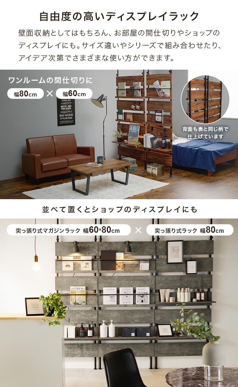 【DIYや工事による穴あけ不要! 】お気に入りの本や雑誌などを飾って収納できるマガジンラック。賃貸でも安心な天井と床を使った突っ張り式なので、デッドスペースの有効活用が女性一人でも簡単にできます。