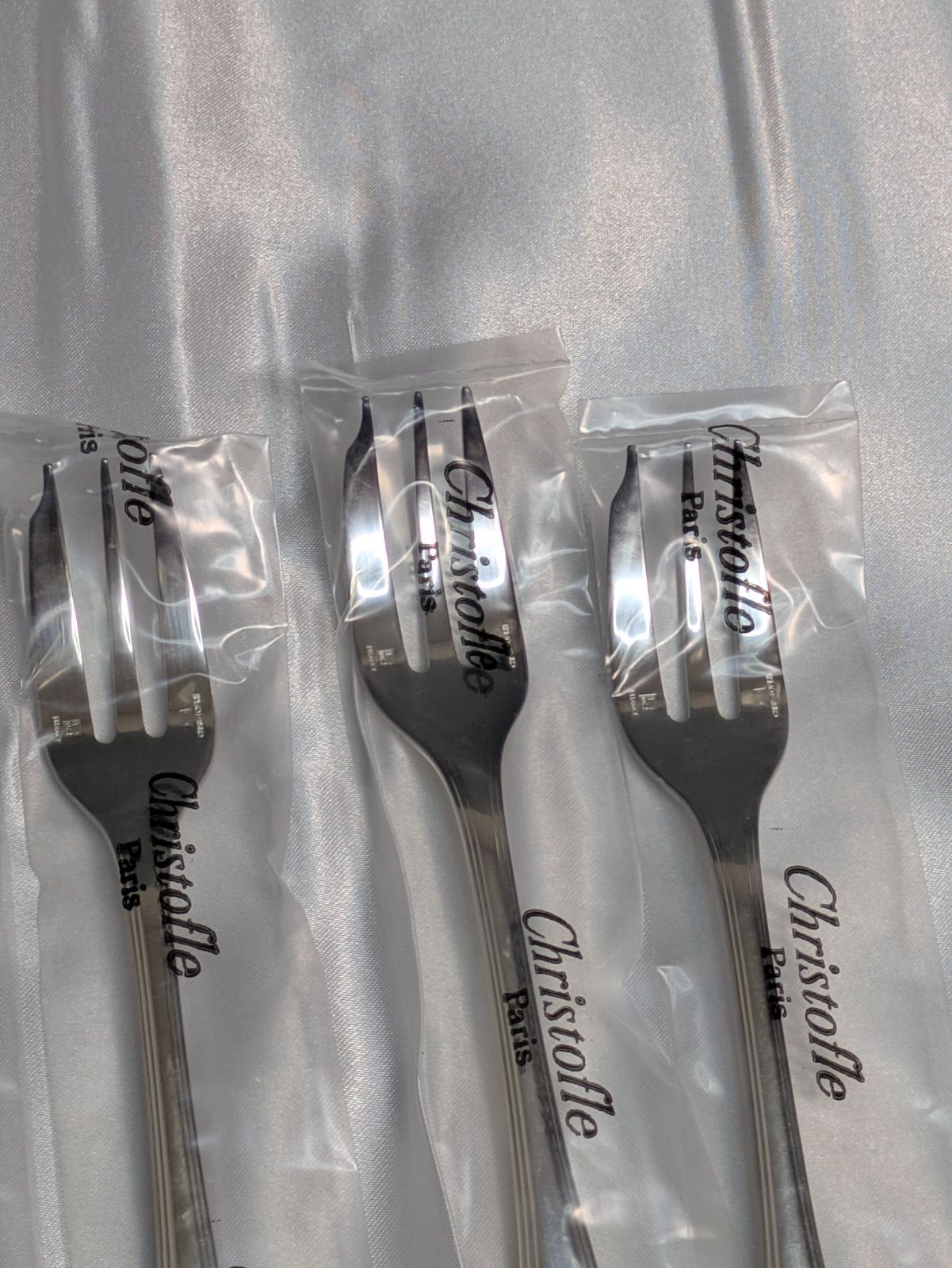 各フォークには、クリストフルの真贋を証明する刻印(OCマーク、天秤マーク等)が刻まれております。