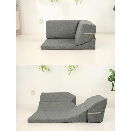 4つのパーツに分かれており、自由なレイアウトが可能です。コーナーソファも背もたれが倒れる仕様で使い方の幅も広がります。シンプルなデザインは和室・洋室どちらにも馴染み、ノンフレーム&軽量設計で掃除や模様替えもラクラクです。