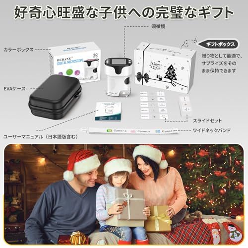 顕微鏡小学生子供用 - 1000倍 4 K 2.0インチ画面 充電式 ミニポケットデジタル顕微鏡 スライドキット付き 携帯型 教育ギフト 4-12歳の子供 学生向け EVA収納盒付き 白 po c 10815 d 9