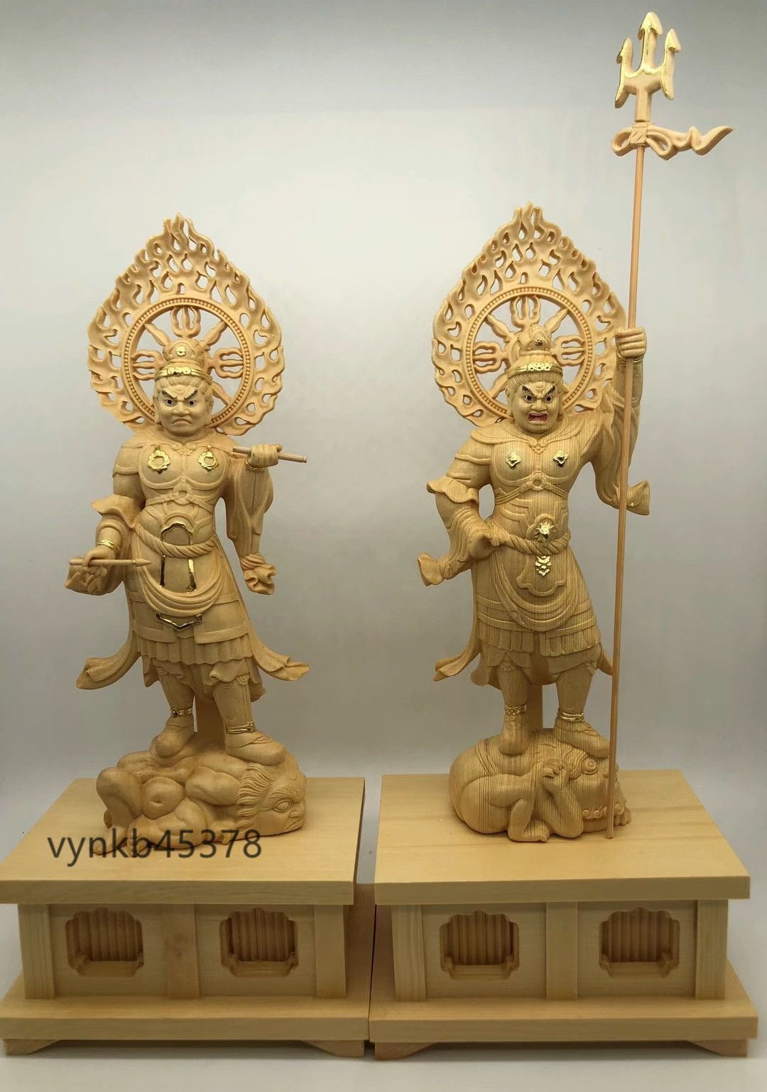 最 総檜材 木彫仏像 仏教美術 精密細工 仏師で仕上げ品 四天王立像一式 高28 5 cm