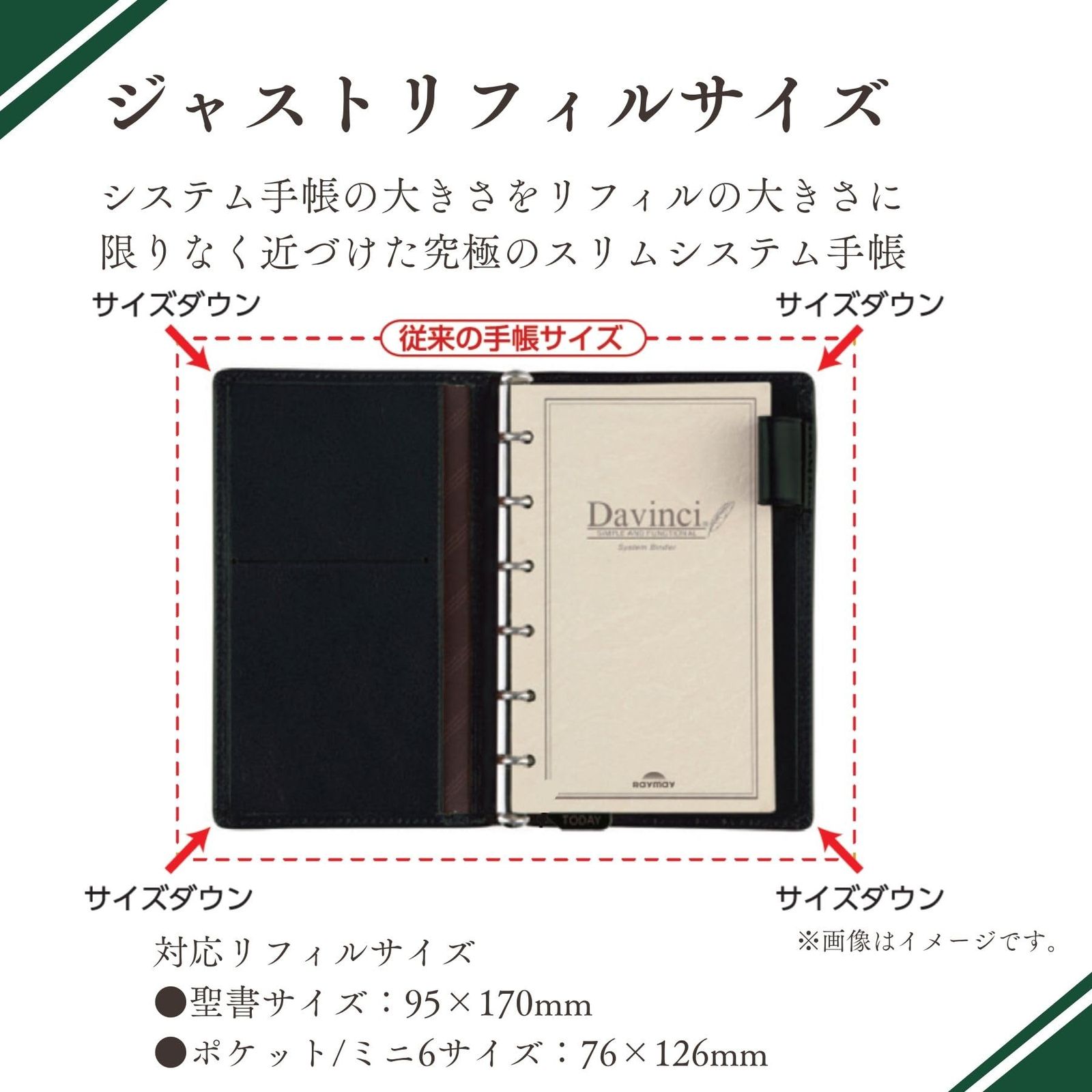 レイメイ藤井 システム手帳 ダヴィンチ オイルレザー バイブルサイズ 11 mmリング 本革 ブラック