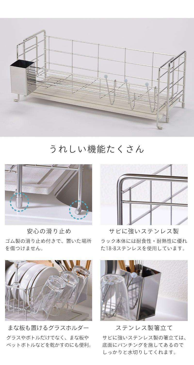 水切りラック伸縮 スライド 水切りかご 水切り ラック スリム 奥行20 かご バスケット トレー付き 珪藻土 けいそうど 幅56 3 0~27 5 高さ21 cm ステンレス シンク横 シンク上 シルバー 大容量 省スペース 国産 燕三条 箸